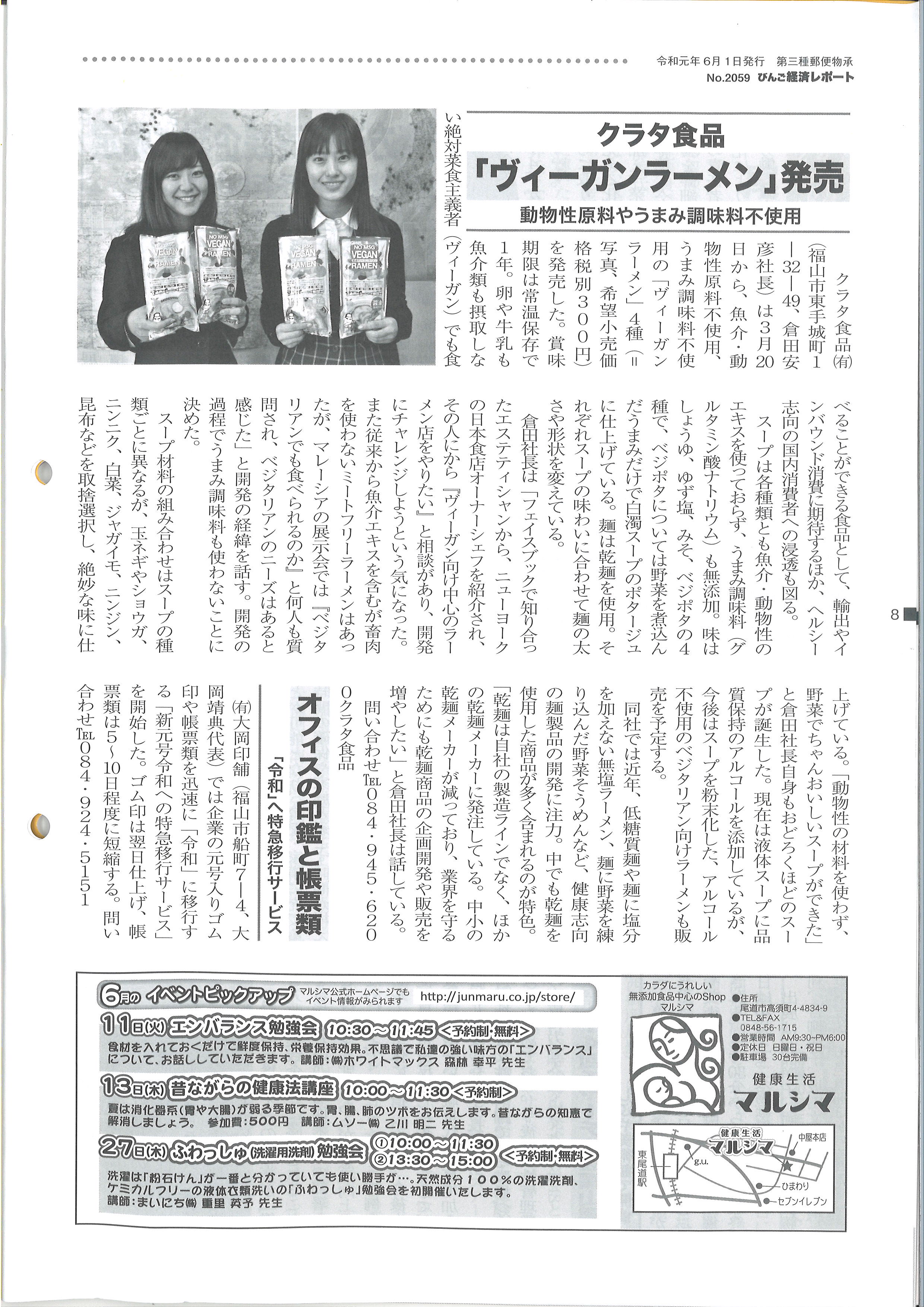 本日発行のびんご経済レポートにて 弊社のヴィーガンラーメンについて紹介していただいてます☆彡